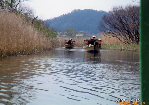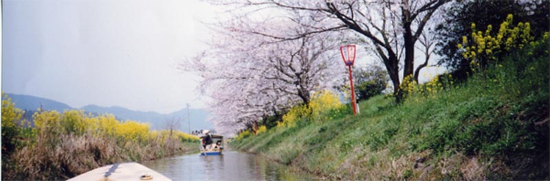 近江八幡では手漕ぎ舟による「水郷めぐり」を楽しみました。うぐいすの声、満開の桜、贅沢な時間が流れていきました。まるで「剣客商売」の秋山小兵衛の乗る舟があちらからやって来るような景色です。