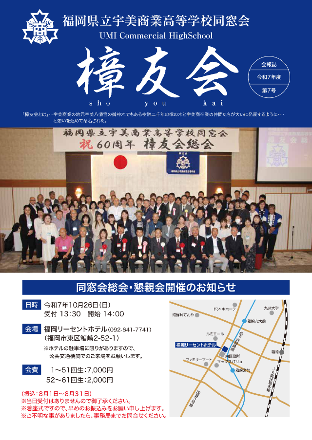 福岡県立宇美商業高校同窓会「樟友会」からのお知らせをお届けします。
