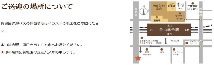 ■送迎バスをご用意しています 金山駅 南口を出て右方向19号線docomoShop前付近