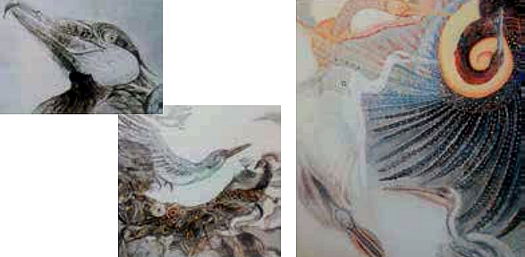 港南で日本画の絵の具の美しさを知り興味を持ったので、大学は日本画専攻とし四年間取り組みました。そして、幼いころから好きだった鳥をテーマに作品を制作するようになりました。本当に描いてみたいものがやっと見つかったのです。
